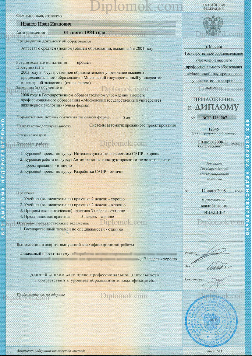 - Комплект: Диплом + приложение + обложка